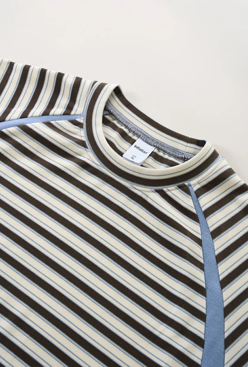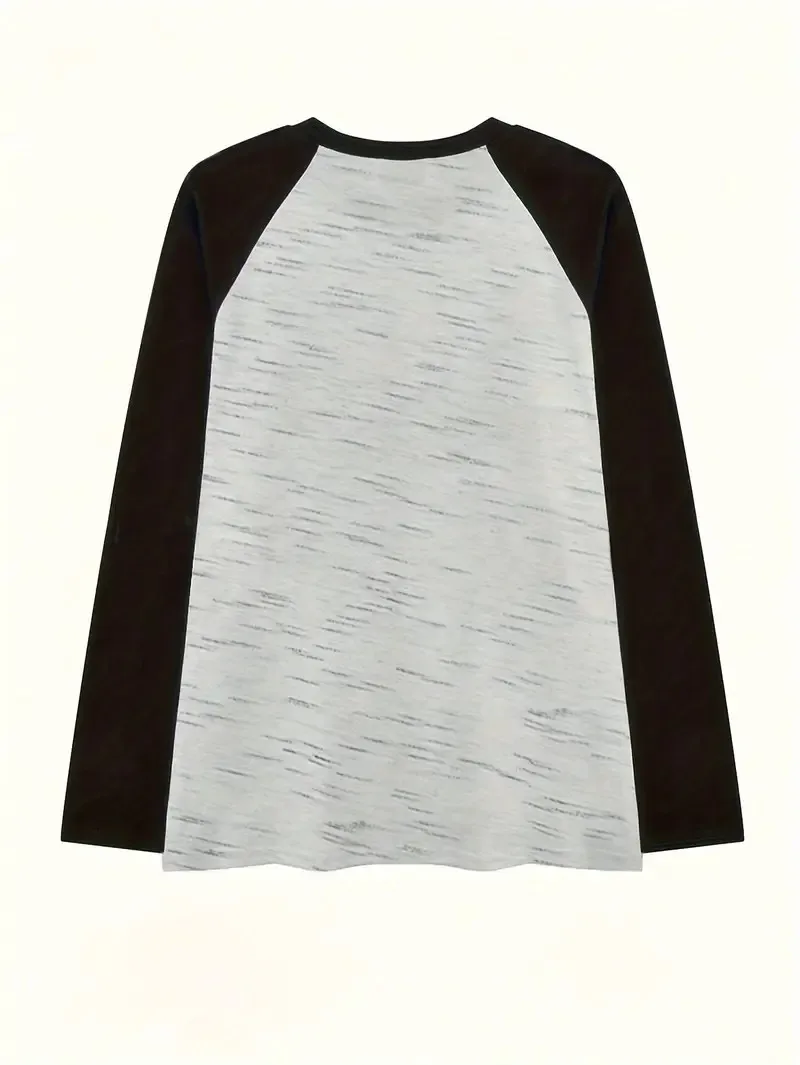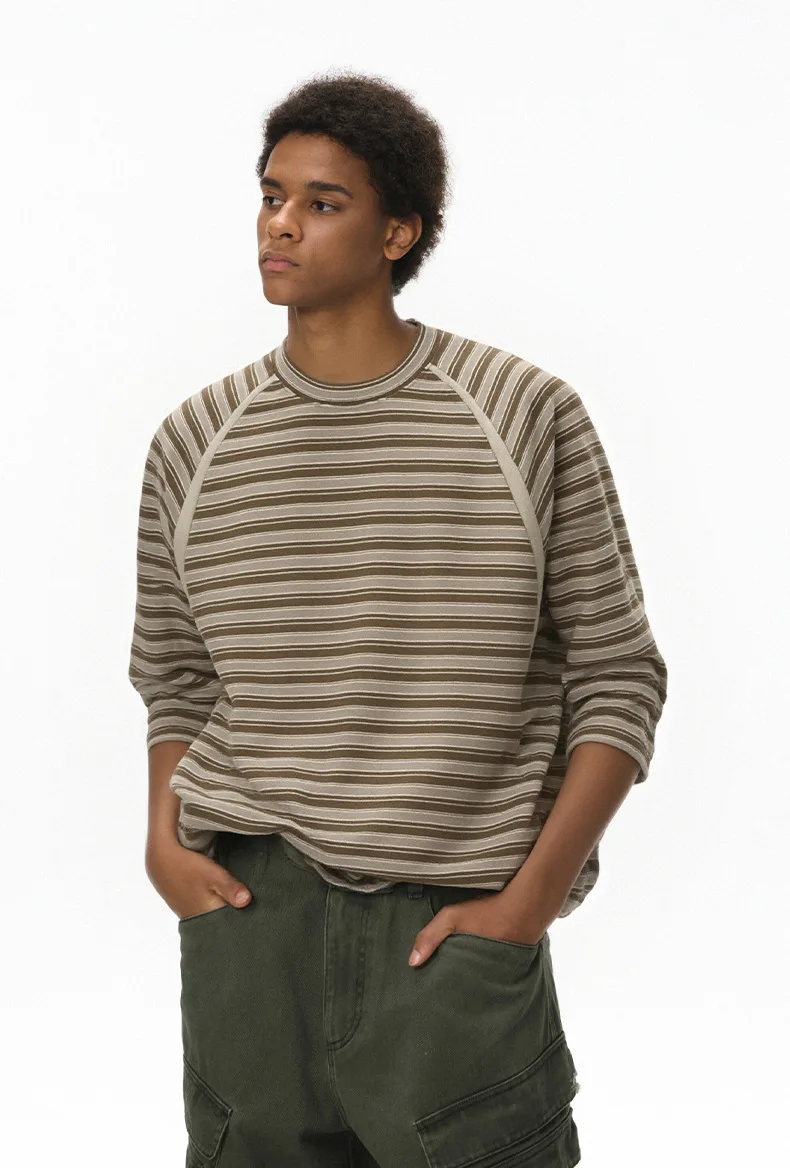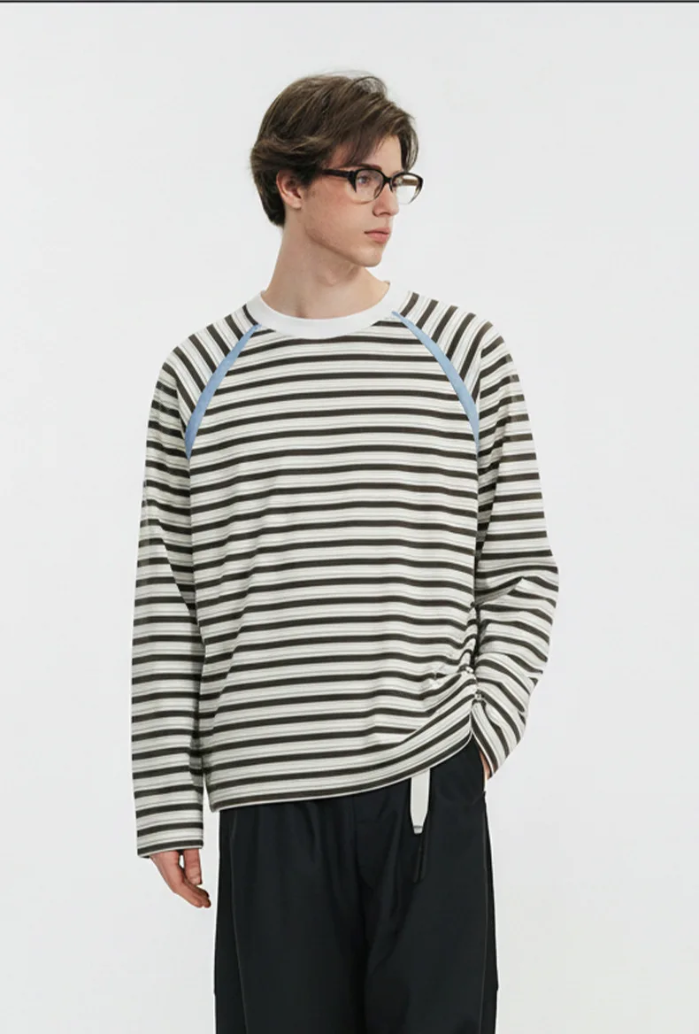 Color Block Streetwear T-Shirt Men's Loose Fit Long Sleeve Striped Top American Style Casual Shirt Crewneck Pullover Fall Winter